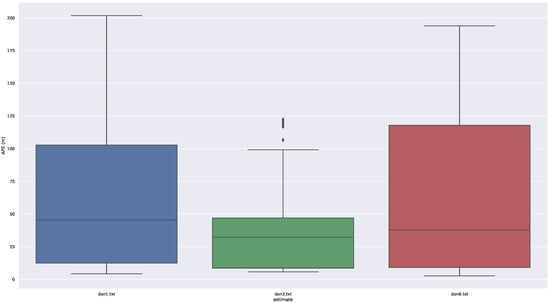 The box diagram of the deviation is shown in Figure 6, which allows us to have a better view of the magnitude of the deviation. The DON3 system has the smallest error.