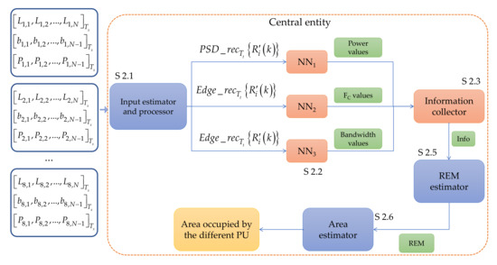 | Step 2.2 | returns an approximate number of detected PUs and their bandwidths. At the end of this section, it is discussed what would happen if the number of PUs detected by each NN is not the same. |