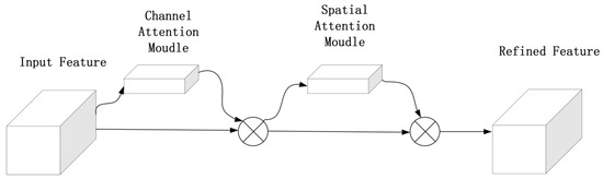 CBAM is a widely used and lightweight attention mechanism, which can be divided into CAM (channel attention module) and SAM (spatial attention module). When inputting the feature map , The CBAM infers one-dimensional channel attention feature map , and two-dimensional spatial attention feature map . The process of CBAM can be illustrated as: