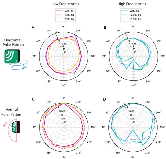 - Rayburn, R.A.; Eargle, J. Eargle’s Microphone Book: From Mono to Stereo to Surround: A Guide to Microphone Design and Application, 3rd ed.; Focal Press/Elsevier: Waltham, MA, USA, 2012; ISBN 978-0-240-82075-0. [Google Scholar]