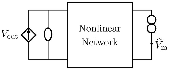 where and are the port voltages and port currents of network , whereas and are the port voltages and port currents of network , respectively. According to Equation (13), for example, we can expect the adjoint of an ideal voltage amplifier to maintain the same topology but act as an ideal current amplifier.