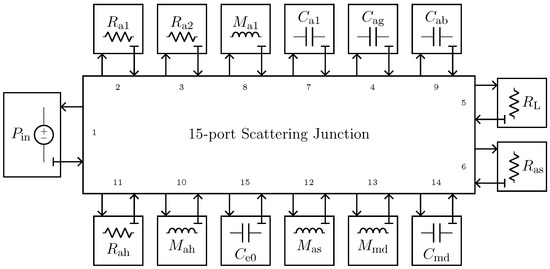 - Werner, K.J.; Bernardini, A.; Smith, J.O.; Sarti, A. Modeling Circuits with Arbitrary Topologies and Active Linear Multiports Using Wave Digital Filters. IEEE Trans. Circuits Syst. I Regul. Pap. 2018, 65, 4233–4246. [Google Scholar] [CrossRef]