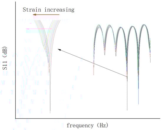 According to Equation (3), the relationship between the resonant frequency shift and strain is linear, and the vector network analyzer (VNA) can be used to track the Nth resonant frequency shift.