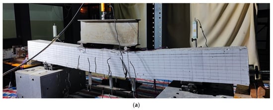 At the beginning of loading, increase the load to 40 kN step by step by 20 kN. Then, the load gradually increased step by step by 10 kN until the concrete beam was completely damaged. The load was held for 10 min at each step. During this time, data acquisition was performed.