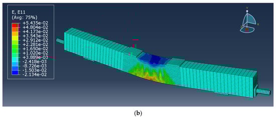The overall mesh size of the FEM is 5 cm, and the mesh size is 1 cm in the pure curved segment between the two loading points, which is shown in Figure 20.