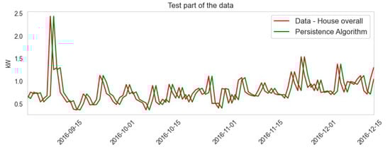 Many performance evaluation metrics are used in the literature for prediction models. We used the moving average as our baseline model for time series forecasting for smart home energy usage under different weather stats. The moving average is mathematically represented as Equation (1), which gives a threshold for beating the root mean square error (RMSE).