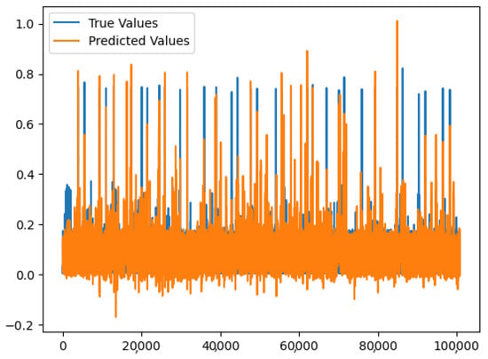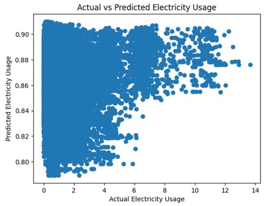 Figure 16 shows the predicted value of energy consumption from the model based on the input data from the test dataset. The accuracy score of the model is correct 99.52% of the time when predicting the energy consumption values. The model predicted a value above a certain threshold, but only 75.32% of those predictions were actually correct.