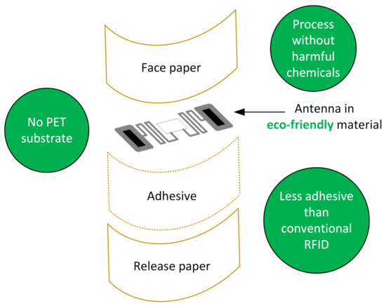 | Material | Dimensions (mm2) | Gain (dBi) | Reading Range (m) | Ref. |