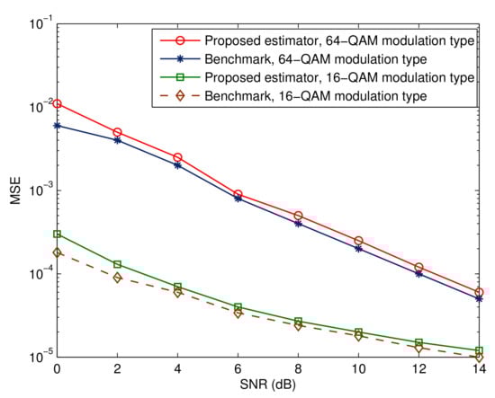 Note that the previous formulation of was constructed assuming that four SFBC signals are used. For any other set of SFBC signals, an equivalent expression can be simply obtained. In addition, the bit error rate (BER) is used as a quality metric of the entire system, whereas the mean square estimation error (MSE) is utilized to assess the offered estimation of the IQD parameters and radio links.