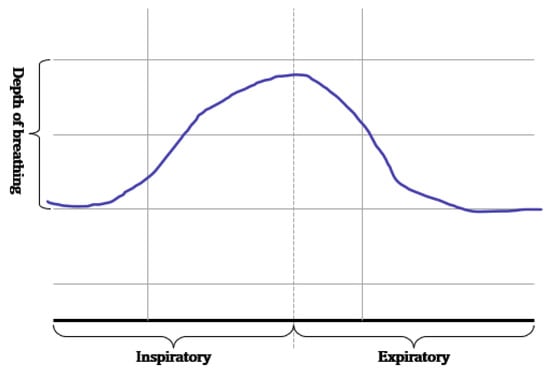 As shown in Figure 1, the breathing signal rises during inhalation and descends during exhalation. The amplitude of the breathing signal is determined by the depth of the breath. Furthermore, the period of the signal increases with the duration of the breath [20].
