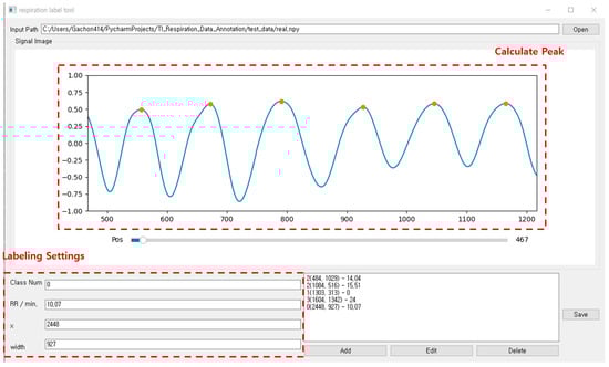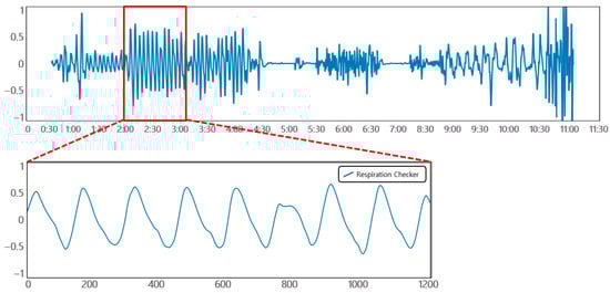 Respiratory information of humans is being utilized not only for disease diagnosis, but also in various fields related to health, such as healthcare. Several studies are being conducted, including management of bronchiectasis, diagnosis of sleep apnea, analysis of respiration movements, and research on COVID-19’s respiratory symptoms. These studies aim to improve diagnosis, treatment, and management methods in the medical field through the collection, analysis, and interpretation of breathing data [1,2,3,4]. To obtain meaningful respiratory information, recognition and analysis of the respiration patterns from the breathing signal data collected through the measuring device are necessary [5]. Traditionally, a belt-type measuring device with a sensor attached is used to collect breathing signals. However, in this study, breathing data were collected using a non-contact mmWave sensor. Non-contact respiration measurement has the advantage of providing accurate breathing data while increasing patient convenience and safety, and it is used in various medical and research fields [6,7,8,9,10].