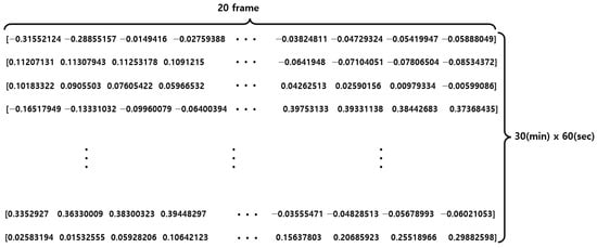 The model configuration to determine the optimized architecture of the proposed model is configured as shown in Table 5. In the model architecture, the layer implies the number of 1D CBRMs, and it is composed of 2–5 for each input size. When designing the model, the minimum kernel size of the 1D convolution layer was set to 6, and when determining the number of layers, the size of the flattened feature vector was set to 64 or more after all of the input data had passed through the CBRM unit. The number of FC layers was configured according to the size of the flattened vector: four if the size was 1024 or more, three if the size was 512 or more, and two if the size was 64 or more. Output dim refers to the size of the feature vector (output dim = 32) after passing all of the layers before cosine similarity calculation.