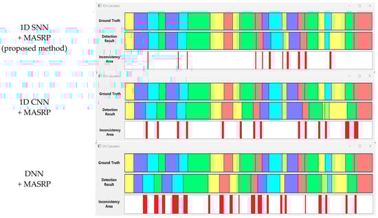 Figure 23 shows the ground truth for the test data and the processing results obtained applying the 1D SNN and the MASRP algorithm on the test data. The inconsistency range shows the error between the ground truth and the detection results of the proposed method.