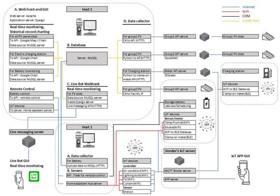 Python and open-source Python-based applications were mainly used for better integration, extensions, and sustainability, such as Django, Flask, HA, HTTP API, Line bot, data collector, and battery charging scheduling application.