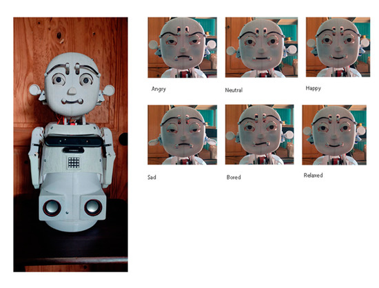 - Adăscăliţei, F.; Doroftei, I. Expressing Emotions in Social Robotics—A Schematic Overview Concerning the Mechatronics Aspects and Design Concepts. IFAC Proc. Vol. 2012, 45, 823–828. [Google Scholar] [CrossRef]