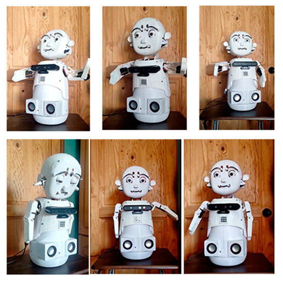 A social robot is a robotic platform that integrates a computational model able to communicate and interact, understand, and even relate to us in personal way [20]. However, designing a social robot for ASD is a challenge, especially if the interaction is between a child and robot, as children have limitations with respect to their perceptual, motor, and cognitive abilities compared with adults. The first social robot with emotional abilities was Kismet [25]. Kismet was designed with a mechanism to help it cope with a complex social environment, where many humans communicate emotional expressions using their face. This social robot can express emotional states such as happiness, sadness, surprise, anger, calm, displeasure, fear, interest, and boredom. This expression of emotions is achieved through the face, voice, and movements.