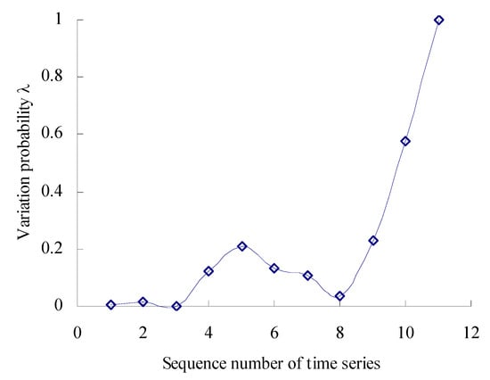 Based on the maximum entropy method and the Poisson counting principle, the variation probability of the OVPS is calculated for MTSB. The small data sample of variation probability is obtained by polynomial fitting for each time series. The estimated true value curve and the upper- and lower-bound curves of variation probability are obtained by fusing the grey bootstrap method into the maximum entropy method. The VPMR is calculated based on the Poisson process, which is used to dynamically evaluate the failure degree of OVPS for MTSB.