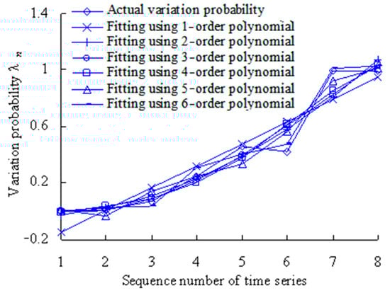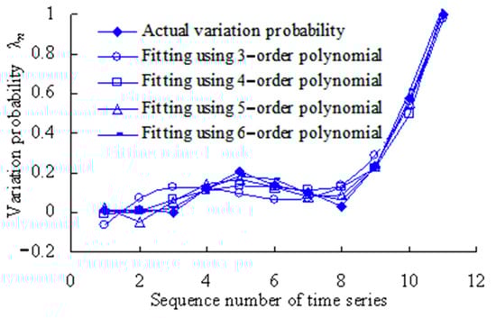 The least-squares method is used to fit the variation probability with different order polynomials. The fitting effect depends on the correlation coefficient R2. The closer the correlation coefficient R2 is to 1, the better the polynomial fitting effect. If the correlation coefficient R2 is less than 0.8, the fitting effect is worse, so the polynomial will not be used in the later analysis process.