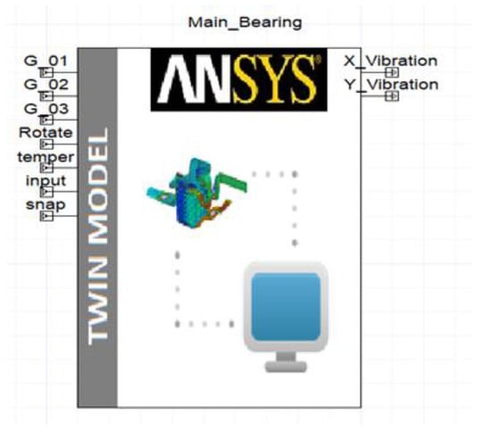 Within the Ansys Twin Builder environment, this study developed a digital twin model for the rolling bearing, as illustrated in Figure 3. Through the meticulous adjustment of virtual sensors and input parameters, vibration displacement signals along the X and Y axes of the rolling bearing were obtained to facilitate the training of the subsequent fault diagnosis model. Ultimately, the encapsulated digital twin model can be seamlessly deployed on IoT platforms such as Microsoft Azure IoT, fostering streamlined connectivity within the digital twin system framework.