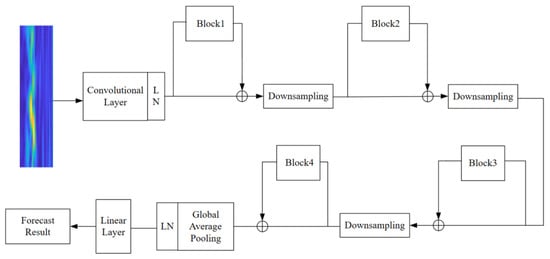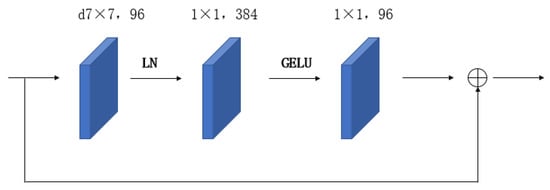 Moreover, ConvNext replaces the customary BN layer with the LN layer and reduces the number of normalization layers, thereby eliminating redundancy. The LN layer is positioned after the initial convolution layer within each convolution block, as illustrated in Figure 6. These collective improvements augment the ConvNext network’s overall performance and efficiency.