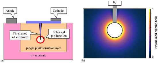 The so-called “spherical avalanche diode” seems to be the first APD intentionally designed using a non-planar approach [33]. The main idea of the design (Figure 1) was to simultaneously achieve rather contradictory objectives: