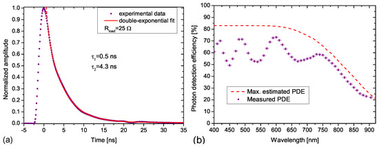 - Stewart, A.G.; Saveliev, V.; Bellis, S.J.; Herbert, D.J.; Hughes, P.J.; Jackson, J.C. Performance of 1-mm2 Silicon Photomultiplier. IEEE J. Quantum Electron. 2008, 44, 157–164. [Google Scholar] [CrossRef]