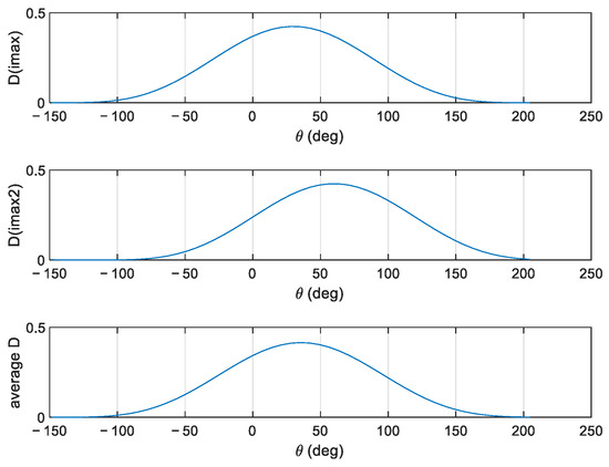 As an example, with , , , , and , with either or , the directional spectra appear as in Figure 7.
