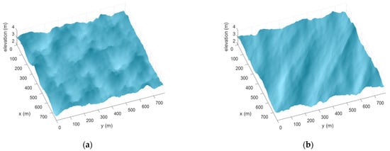 The synthesis of an associated sea state field, which constitutes a realization of the stochastic field characterized by (28), can be obtained in different ways, including the double summation approach [35,36], which can be expressed in the following way: