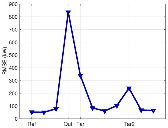 The root-mean-square error (RMSE) is defined as in Equation (12):