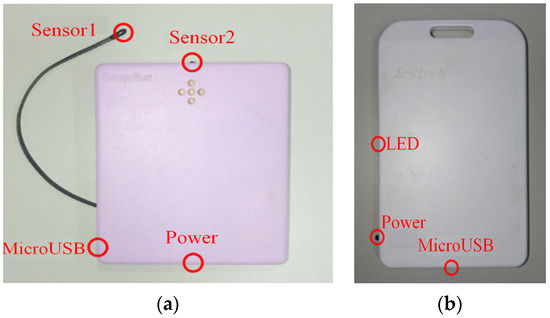 (a) Tag of temperature measurement smart T-shirt and (b) tag of smart adult diaper.