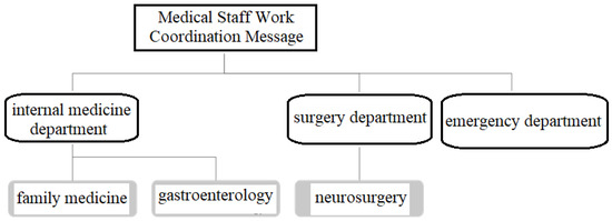 To facilitate the management of Topics on this platform, a hierarchical approach to Topic naming is used. The three sources of medical information are used as the first level of Topics, as shown in Table 1. Under the hierarchical naming approach, the slash symbol “/” is used to categorize the Topics of different departments and the hierarchical structure of naming is shown in Figure 12. In Figure 12, we can see that the Topics are divided into three levels based on the departments. According to this hierarchy, the theme names of the department are shown in Table 2.