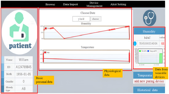 The development of the Internet of Things (IoT) [1,2,3] has led to the rise of wearable mobile devices, which can be used to record physiological data, such as heart rate and exercise status via smartwatches, or to display information on wearable optical glasses in a hands-free manner, such as Google Glass. Wearable mobile devices have been applied in various fields, especially in the field of medical care. Wearable mobile devices can be used to help measure and record patients’ physiological data or be installed on medical devices to record information and usage records of medical devices to help healthcare professionals manage them [4,5,6]. Medical care and healthcare are thus hot areas of IoT applications [7]. Through the technology of IoT, various medical sensor devices and wearable devices are integrated, and the information from each sensor device is received through a wireless network [8,9,10], improving the service quality and efficiency in the field of medical care and healthcare [11] as well as helping medical institutions to manage healthcare information and medical resources [12].