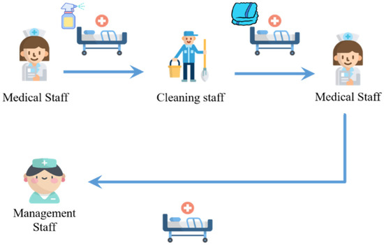 Advances in medical care have led to a significant reduction in the death rate and a gradual increase in average life expectancy. According to the Ministry of the Interior, Taiwan, the elderly population exceeded 14% of the total population in 2018, meaning Taiwan officially became an “aging society”. As the proportion of the elderly population continues to rise, the demand for medical care escalates, and the workload of healthcare workers increases. This, coupled with the declining fertility rate, has resulted in a declining workforce and has highlighted the shortage of medical manpower. In addition to patient care, medical staff in medical institutions also need to manage medical equipment and supplies [13]. Medical devices and equipment such as wheelchairs and crutches are available for rent to people/patients who come to the facility, but people often forget to return them to their original place after using them and may even take them away from the facility. These oversights often cause great problems for medical staff in the management of medical supplies and increase the workload of medical staff. Furthermore, in the maintenance of medical equipment, management staff need to be quickly informed of the maintenance time and status of each piece of medical equipment. For example, in the case of bed management, the statuses of beds, such as not-in-use, in-use, and clearing beds, are required to be updated immediately so that medical staff can clearly have those empty beds for new patients. During the period between patient check-out and bed cleaning, it is often necessary for nursing staff and bed cleaning staff to provide each other with real-time information on the status of beds to improve the overall speed of the bed cleaning process. In the past practice of using telephone contact for bed cleaning, nursing staff may forget, due to their busy work schedule, to notify bed cleaners in time when patients check out, which leads to delays in bed cleaning progress. Therefore, how to provide this shared medical information to healthcare and medical management staff in a timely and transparent manner to enhance the efficiency of medical institutions is an urgent problem for medical institutions today.