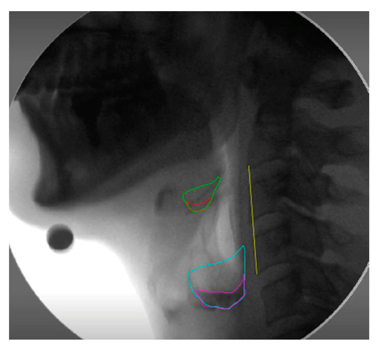- Perlman, A.L.; VanDaele, D.J.; Otterbacher, M.S. Quantitative assessment of Hyoid bone displacement from video images during swallowing. J. Speech Lang. Hear. Res. 1995, 38, 579–585. [Google Scholar] [CrossRef]