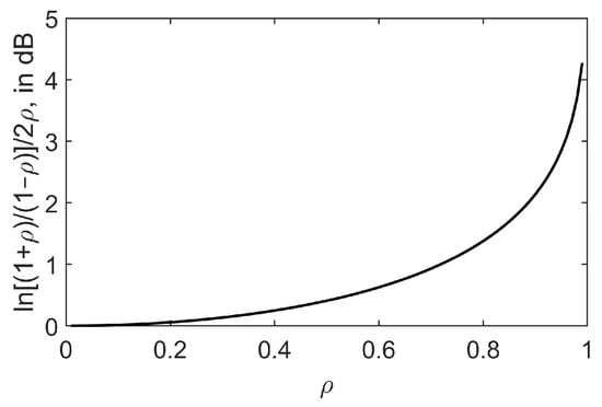 where the factor makes explicit the inequality between the two SNR definitions. This factor is plotted in Figure 1, in dB, as a function of . If the SNR is defined according to [13] so that it remains constant for any , the actual SNR will be dB higher, progressively overestimating the detector’s performance in regard to the one achieved with the correct SNR, as becomes larger.