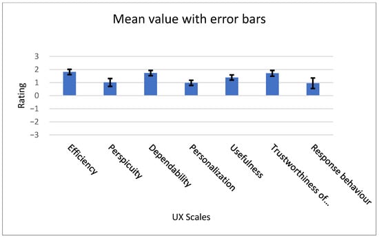 User experience is usually measured with the deployment of questionnaires. To the best of our knowledge, there are no known questionnaires available that assess the features of assistive technology solutions targeting navigation for the BVI. The framework adopted for the purpose of this study is a modified version of the standardized UEQ+ framework []. The latter is a configurable, although limited, set of scales with the intent to quantitatively measure the opinion of a user on a Likert scale of 1 to 7 where the value 1 corresponds to “not at all satisfied” and the value 7 corresponds to “extremely satisfied.”