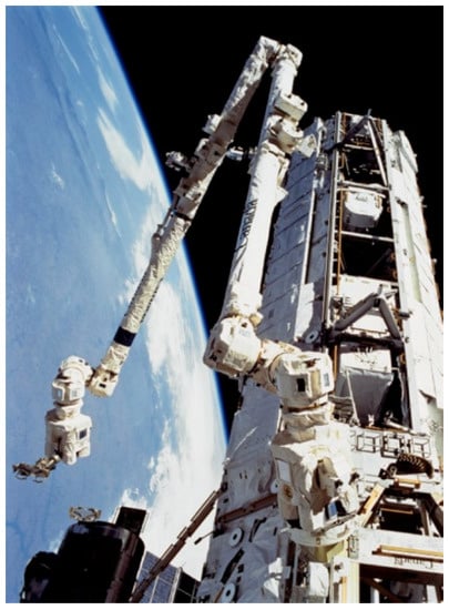 - Crane, C.D.; Duffy, J.; Carnahan, T. A Kinematic Analysis of the Space Station Remote Manipulator System (SSRMS). J. Robot. Syst. 1991, 8, 637–658. [Google Scholar] [CrossRef]