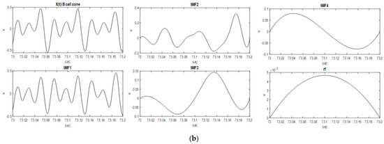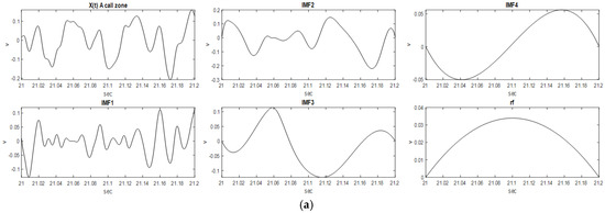 The CESED of each IMFi in the 500 sampled signals was obtained, as shown in Figure 9. The energy distribution of the A call and B call can be clearly observed in Figure 9 for IMF1 and IMF2.