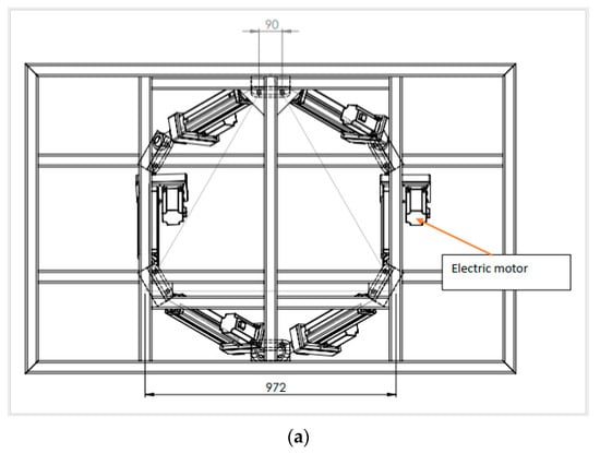 Figure 2a showcases the motion platform assembly utilized in the laboratory, which is comprised of six electric motors and six actuators located between the upper and bottom frames. With a height of approximately 0.8 m (see Figure 2b), this hardware setup allows movement in the pitch, roll, and yaw axes, as illustrated in Figure 2c, granting the simulator six degrees of freedom (6-DOF). The platform is supplied by Pragolet, s.r.o., Praha-východ, Czech Republic [39] and its movements are managed by a specially designed algorithm for optimal motion cues. This algorithm includes a washout filter and a kinematic transformation of the actuators’ position. The targeted motion and “washout” algorithm are computed on the base of the inner model running on dedicated hardware (PLC). A mathematical and physical model of the vehicle is calculated by separate software on different hardware supplying the control PLC with these target motion data.