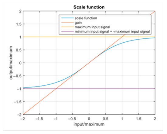 Representation of the Scale Function [25] that scales the input signal from the mathematical model of the simulated vehicle to the motion platform.