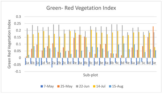 Green–Red vegetation Index of Plot at Different Growth Stages.