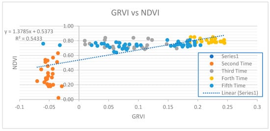 Graph of Plot Showing Relation Between GRVI and Leaf NDVI.