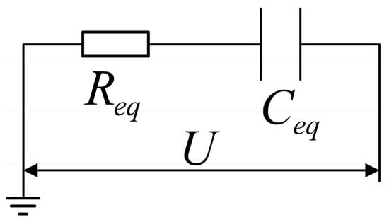 Due to the presence of an insulating sheath between the inner electrode and the seawater used in the measurement, no direct current channel exists between the inner electrode and the earth. As can be seen in Figure 2, from an electrical perspective the impedance of the seawater mixture attached to the single-side cable may be comparable to a resistance and a capacitance in series, and the impedance of the capacitance is recorded as .