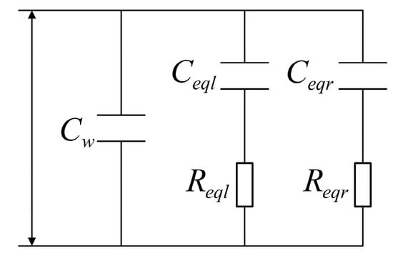 Take either value as the length of attached seawater mixture on the left and right sides, taking as an example. is chosen as the theoretical value during simulation. Then, calculate the associated equivalent capacitance and equivalent resistance using Formulas (39)–(42). Choose the value for regulating capacitance as in order to make the Formula viable.
