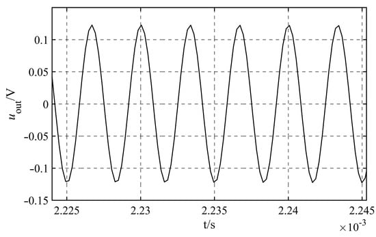 Equation (32) is obtained by neglecting tiny capacitance and , so when selecting capacitance , equation must be established. According to Formula (28), the output signal can be expressed as