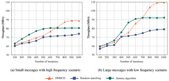 The experimental results highlight the superior performance of the proposed DMSCO method across various message scenarios. In high-frequency, small-message situations, our approach achieves a significant improvement of approximately 46.61% in both the message transmission throughput and overall performance compared to the default configuration after 1000 iterations. Conversely, in low-frequency, large-message situations, the method archives an increase of approximately 85% in the message transmission throughput and overall performance compared to the default configuration after 1000 iterations.