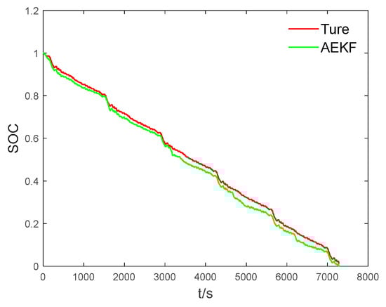 Affected by temperature, battery aging, and other factors, there will be real-time changes in interference noise affecting the SOC estimation of a Li-ion battery, but when estimating SOC based on EKF, the process noise covariance matrix and observation noise covariance matrix are often set as constants substituted into the recursive process, which will lead to a decrease in SOC estimation accuracy. To solve the error problem caused by the above reasons, the Sage–Husa adaptive filtering algorithm is introduced to construct the adaptive extended Kalman filtering algorithm (AEKF) so that the noise covariance can be updated adaptively in the recursive process of the algorithm. The adaptive noise covariance equation is: