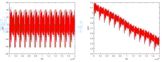 In actual operation, the battery cannot be guaranteed to work at a constant current all the time, and the current output of the battery is complex and variable. This study was conducted in a MATLAB working environment to simulate the battery operation mode for the experiments, assuming that the battery was fully charged at the initial moment and setting the initial value of SOC to 1. The validity of the proposed estimation method is demonstrated by the complex operating condition FUDS. The current and voltage data of FUDS operating conditions are shown in Figure 10.