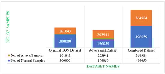 Statistics of the TON_IOT dataset, adversarial dataset, and combined dataset.
