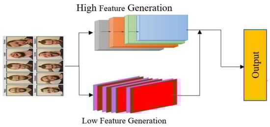 The high feature generation pyramid (HFGP) is used for feature extraction and representation from images. It combines shallow and deep features to obtain a more comprehensive representation of the input image. In our facial module (Figure 2), ResNet provides multilevel semantic information for feature maps through its conv4 and conv5 layers. By combining these shallow and deep features, the HFGP can create a more comprehensive representation of the image, capturing both low- and high-level details.